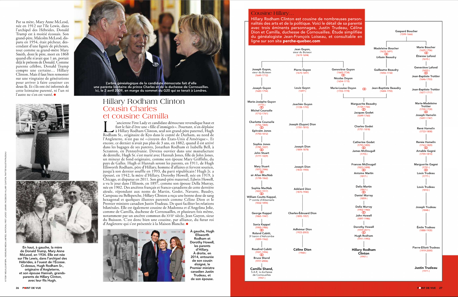 Point de Vue (2016). « Hillary Rodham Clinton, cousin Charles et cousine Camilla ». No 3564, semaine du 9 au 15 novembre 2016.